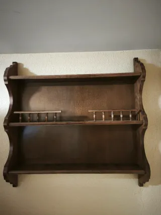 Estantería de madera de color beige. -Está en perfecto estado, (tiene tres marcas de colgar una figura en el extremo por la parte estrecha que coincidía con la pared.) - Las medidas son 180 x 25 x 3 centímetros. - Se incluyen tres soportes para sujetarlo a la pared. -En una foto he puesto uno de los soportes para wue se vea como queda por detrás en la pared. - Estaba en una sala de estar pero también vale para mejorar el orden en una habitación estudiantil o cualquier otro sitio. - Alguna duda pregunten. - Por su volunen no se envía. - Más artículos en mi perfil.