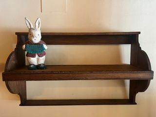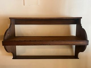 Estantería clásica de madera con un diseño elegante. - Dos niveles para exhibir objetos. - Acabado rústico y atemporal. - Ideal para cualquier estancia del hogar.