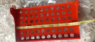 Estantería de metal con un diseño perforado. - Color rojo vibrante. - Fabricada en metal resistente. - Múltiples orificios circulares _hay 6 unidades
