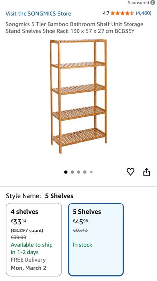 Estantería de bambú de 5 niveles, perfecta para organizar tu baño o cualquier espacio. - Material: Bambú natural. - Diseño de 5 baldas. - Medidas: 130 x 57 x 27 cm.