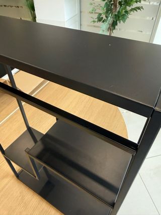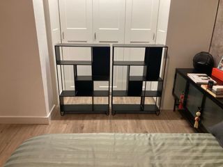 Conjunto de dos estanterías de estilo industrial, perfectas para organizar tu espacio con un toque moderno. - Diseño abierto con múltiples compartimentos. - Estructura metálica robusta. - Acabado en color negro. Su precio inicial es de 159 euros cada una y se venden por 200 € las dos. Medidas: alto 97,5 cm, ancho_ 68 cm, profundidad 20,5 cm.