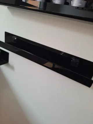 Estanterías de pared de 30 cm de longitud. Precio por unidad hay 14 Uds.Plastico negro acabado briillo. Ideales para organizar y exhibir productos. - Diseño moderno y elegante. - Fabricadas en plástico resistente.