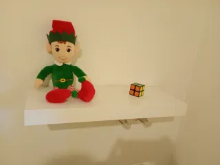 Conjunto de dos estanterías de madera para colgar en la pared. Perfectas para libros o decoración. - Estanterías de madera. - Incluye El Principito y La Puerta de los Tres Cerrojos. - Peluche de elfo incluido.