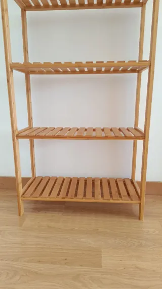 Estantería de bambú con un diseño moderno y natural. Ideal para organizar tus objetos en cualquier estancia. - Fabricada en bambú y madera. - Cinco baldas con listones para ventilación. - precio no negociable 😉