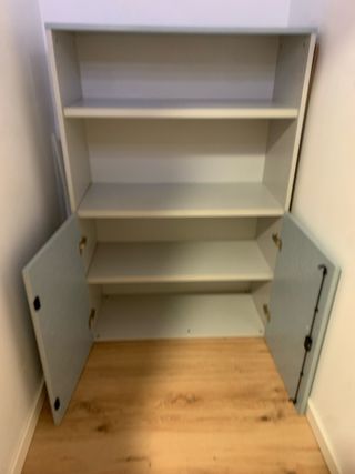 2 Estanterías infantiles de madera de la marca Ikea, modelo Flisat. Base inferior de color azul. 12 Eur/ud. 20 Eur si te quedas las 2.