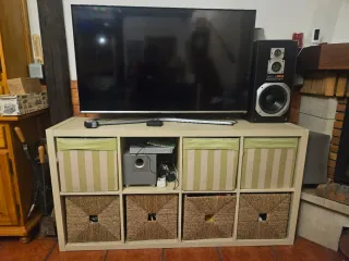 Conjunto de mueble para salón * Televisión y barra de sonido no incluido. En mi perfil hay un aparador que va con el mueble. Se puede comprar junto o separado. Las medidad que salen en el anuncio son las del mueble de debajo de la tv Medidas columna: Ancho: 65 cm Fondo: 42 cm Alto: 183 cm