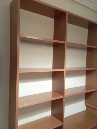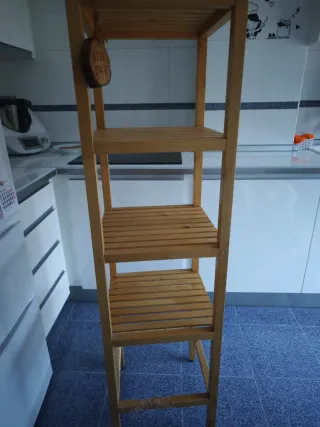 Estantería de madera compacta, ideal para espacios reducidos. - Diseño de líneas sencillas. - Múltiples baldas para organización. Medidas aprox 40 ancho por 15 de fondo por 1'20 de alto. Urge por mudanza