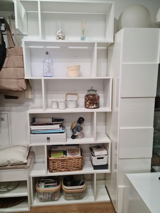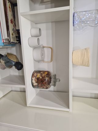 Preciosa estantería con dos cajones, ideal para organizar tu espacio. Es de madera y color blanco. - Perfecta para baño o dormitorio. - Diseño sencillo y elegante. - Dos cajones espaciosos. La vendo por cambio de decoracion en habitación