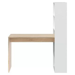 Escritorio con estantería en color blanco y beige y estructura de madera. Ideal para organizar tu espacio de trabajo. - Perfecto estado. - Diseño moderno y funcional. - Combina estantería y escritorio. - Medidas: Estantería de 144 x 53 x 20 cm Mesa de 100 x 71 x 53 cm - Conjunto fabricado en tablero de melamina de primera calidad - Montaje a la izquierda o la derecha Solo tiene un pequeño roce en la esquina derecha de la mesa