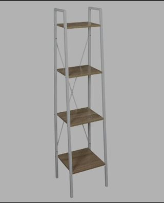 Preciosa estantería de esquina, ideal para espacios reducidos. Se encuentra en buen estado. - Estructura de metal resistente. - Tres baldas de madera. - Diseño compacto y elegante.