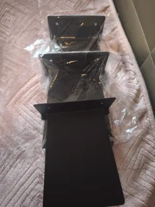 Conjunto de tres estanterías metálicas con base de madera natural, diseño minimalista tipo Kazai. Perfectas para decorar cualquier espacio: salón, dormitorio, baño, cocina o despacho. Fabricadas con estructura metálica negra y balda de madera clara, combinan resistencia, elegancia y un estilo moderno adaptable a cualquier ambiente. 📏 Medidas aproximadas: Grande: 32 × 12 × 32 cm Mediana: 27 × 12 × 27 cm Pequeña: 22 × 12 × 22 cm 💪 Soportan hasta 15 kg cada una, ideales para libros, plantas, marcos o elementos decorativos. ✨ Nuevas, sin usar. Se pueden colgar o apoyar sobre una superficie.