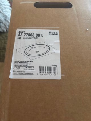 Lavabo de cerámica marca Roca, modelo JAVA. - Referencia: A3 27863 00 0 - Color: Blanco - Dimensiones: Ver diagrama en la etiqueta - Peso: 9.58 kg - Fabricado en España se vende o se canvia x algo que me interese
