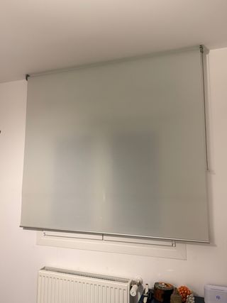 Estor de Ikea en perfecto estado. Deja pasar la luz pero no se ve lo que hay dentro de la habitación. Está como nuevo, se ha cambiado por cambiar la decoración de una habitación. Mide 2m de ancho por 1,90m de largo.
