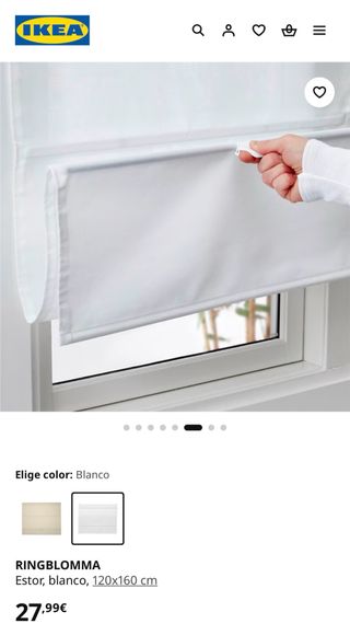 Se venden 2 estores de la marca IKEA en color blanco. Sus medidas son 120x195 cm. Se venden nuevos en el embalaje original cerrado, sin usar. El precio es por los 2. - Estores automáticos enrollables. - Mecanismo sin cadena. - Fácil instalación.