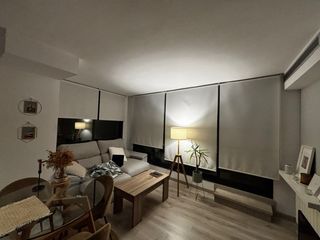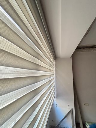 Estor enrollable de tipo noche y día, perfecto para cubrir ventanales. Su diseño permite regular la entrada de luz de forma gradual. - Combina franjas opacas y translúcidas. - Ideal para salones o dormitorios.