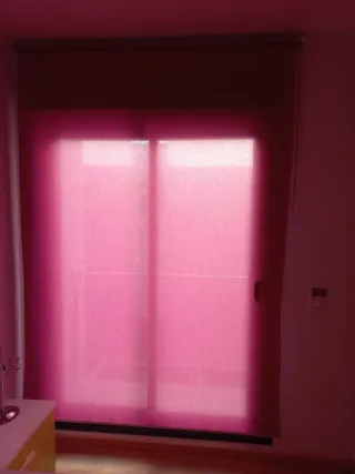 Estor enrollable de color rosa maquillaje, nuevo y sin usar. - Medidas: 60 cm de ancho x 170 cm de alto. - Incluye todo lo necesario para su instalación.