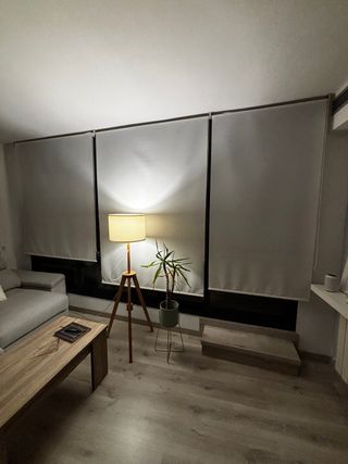 Estor enrollable de tela y metal. - 2 estores Medidas: 135 cm de ancho x 175 cm -2 estores Medidas 135x250 -1 estor Medidas 90x250 Precio por estor. El de 900x250 lo dejo a 10€ Descuento del 10% si se compran 2