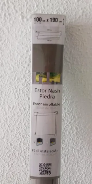 Estor enrollable de color piedra, nuevo a estrenar. - Medidas: 100 cm de ancho x 190 cm de alto. - Fácil instalación.