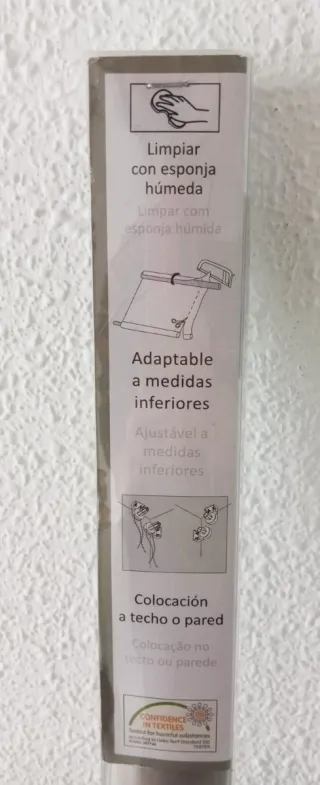 Estor de tela en color gris, con unas medidas de 140x195 cm. Nuevo. En su caja original. - Mecanismo de enrollado. - Diseño moderno y funcional.