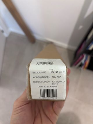 Estor enrollable translúcido de color blanco. Modelo AMZ ARA. - Medidas: 120x250 cm. - Color: Blanco Roto. Dispongo de 2 unidades: Una cerrada sin abrir y otra únicamente abierta, no llegó a instalarse. Precio por los dos: 45€ Precio del cerrado: 25 Precio del abierto sin usar: 23