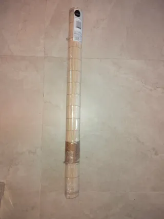 Está nuevo. Dispongo de 2 más de 60cm y uno de 140cm como nuevos. Solo han estado puestos en interior sin apenas uso. - Medidas: 60 cm de ancho x 180 cm de alto. - Material: Bambú y madera.
