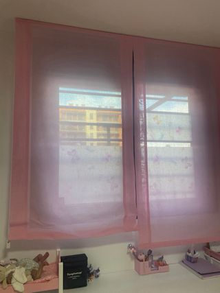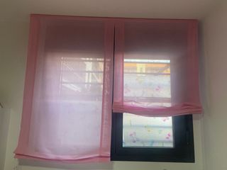 Preciosa estor para ventana, en color rosa. Estan nuevos y está sin usar. Están en el empaquetado original y contiene los tornillos y el material necesario para montarlos - Material de tela de gran calidad. - Medidas: 190 x 90 cm. Comprados en el Corte Inglés...