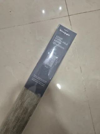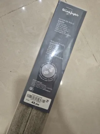 Estor enrollable de la marca El Corte Inglés, modelo Kyoto. - Medidas: 120x250cm. - Fácil instalación. - Sistema de seguridad. - Tornillos incluidos.