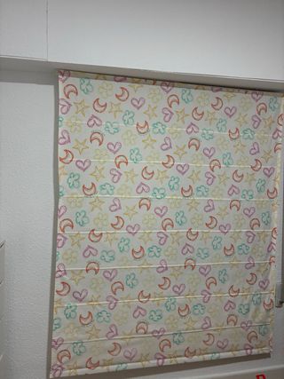 Preciosa estore enrollable infantil con estampado de mariposas multicolor sobre fondo blanco. medidas 1,70 x105 Ideal para dar un toque alegre y divertido a la habitación de los más pequeños incluye tambien funda nordica doble cara medidas 2,60x180 funda almuhada y de cojin incluido precio no negociable. - Perfecto estado. - Fácil de instalar. - Diseño alegre y colorido.