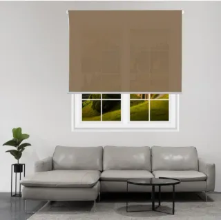 Preciosa estore de tela, ideal para dar un toque de calidez a tu hogar. - Perfecta para ventanas de tamaño mediano. - Diseño elegante y discreto en color marrón. - Material de tela resistente y fácil de limpiar.