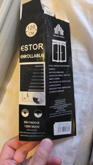 *ESTÁN PARA ENTREGARSE EN HUELVA O ENVÍOS*. Estor enrollable Dalina Textil de tipo día y noche. Según lo pongamos, pasa luz a través o se cierra y hace de "cortina". A su vez se puede subir entero o bajar entero. Medidas: 120x180cm. Medida largo de cuerda: 95cm aprox. Tengo 2 unidades iguales, día/noche gris. Otro anuncio del segundo estor en mi perfil.