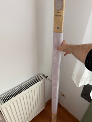 Estor blanco 145cm. Deja pasar muy bien la luz, pero a su vez no se ve desde fuera.