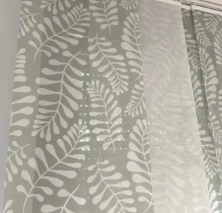 Estores japoneses de la marca IKEA. Son de tela de color blanco y verde Riel de 2m 4 pistas 4 estores 2 blanco 2 verde 60 cm por estor 2:20 de alto 12 euros unidad con todo lo necesario para instalar - Diseño moderno y elegante. - Fáciles de instalar.