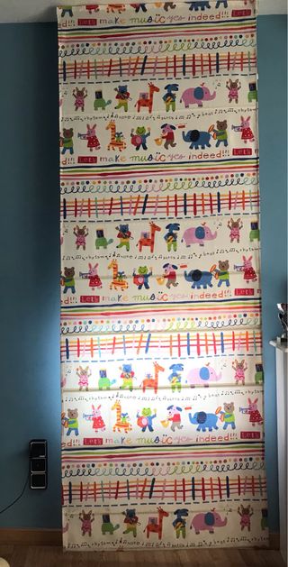 Estores con un alegre diseño de animales tocando instrumentos musicales. Perfecto para decorar una habitación infantil. - Estampado multicolor con animales. - Tejido de fácil limpieza.