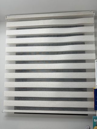 Vendo cortina estor Duo Noche/Dia enrollable de color Blanco con patron en forma de ondas de agua. Es nuevo a estrenar. Medidas: 30x150 cm - Perfecta para cualquier ventana. - Fácil de instalar. Mas articulos en mi perfil. #persiana #cocina #dormitorio #ventana #despacho