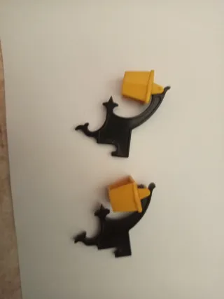 Dos farolas decorativas de la marca LGB para Playmobil. Son de color marrón oscuro y tienen un diseño clásico. - Incluye dos unidades. - Material: Plástico. - Escala G - Modelismo Ferroviario, maqueta