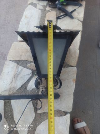 Conjunto de dos farolas de fachada y funcionando Largo 1'30 - Estructura principal de metal resistente. - Lámparas 80 w incluidas Precio 20€ la unidad 30€ todas y regalo una tercera que está perfecta pero con unas fisuras en la pantalla. Escucho ofertas Acepto cambios por algo que me pueda interesar