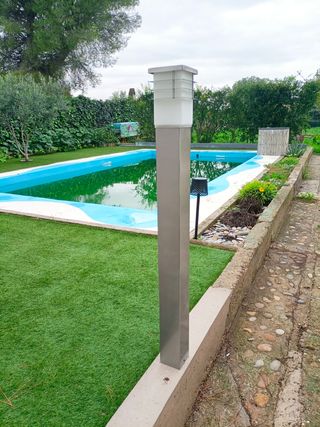 Farola solar para iluminar tu jardín sin necesidad de cables. Se enciende automáticamente por la noche. - Incluye baterías recargables. - Se cargan durante el día mediante un panel solar de alta calidad. - Modelo: Serie 104000.