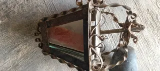 Farol de forja con diseño rústico. Sin cristales. Altura 29'5 cm. Largo 23'5, Fondo 11 cm. ● Entrega en Nestares (Cantabria). ● Posibilidad envíos Wallapop.