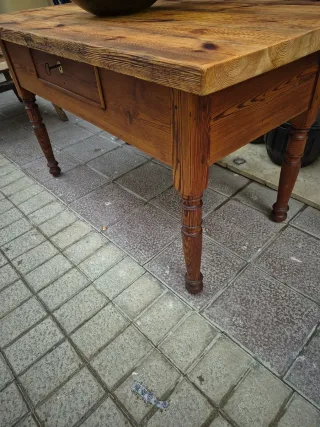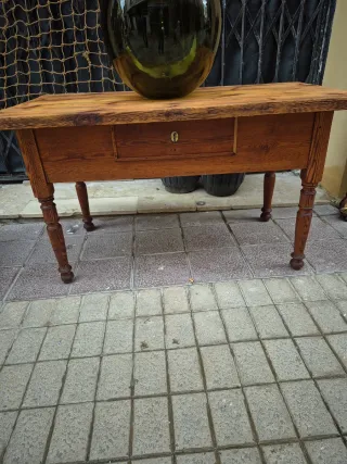 Mesa antigua de madera con cajón