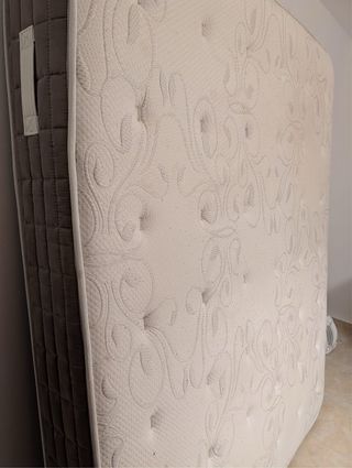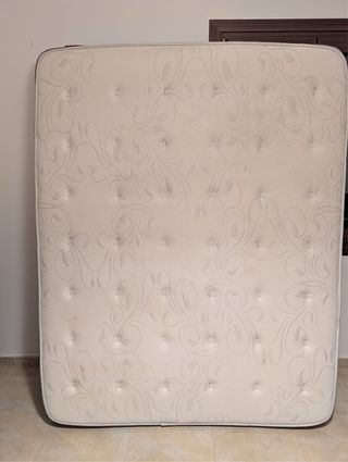 Colchón de 150 cm con núcleo de viscoelástica y espuma. - Tejido exterior de poliéster. - Diseño acolchado con capitoné. Se encuentra en buen estado y es ideal para piso de alquiler, habitación de invitados o uso puntual. • Medida: 150 cm • Material: espuma + viscoelástica • Estado: usado