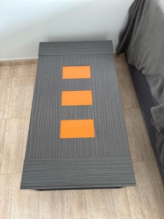 Mesa de centro gris con detalles naranja
