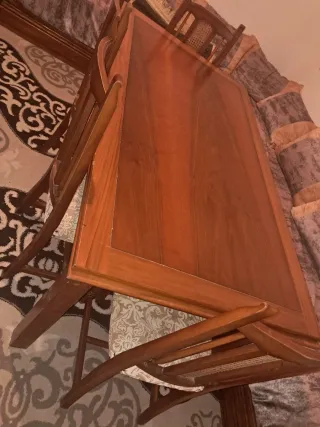 Mesa de comedor de madera con un acabado cálido y natural. Su diseño sencillo la hace versátil para diferentes estilos de decoración. - Tablero de madera maciza. - Patas robustas para mayor estabilidad. *No hago envíos. A recoger en Felanitx.