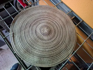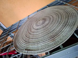 Set de manteles individuales con un diseño tejido en espiral. Tengo 40 und. Los vendo a 2 euros cada uno pero si los llevas todos hago un precio por el lote - Material natural de yute. - Tonos tierra que combinan fácilmente.