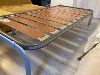 Base de cama con láminas de madera y estructura metálica. - Láminas de madera para un buen soporte. - Estructura metálica resistente.