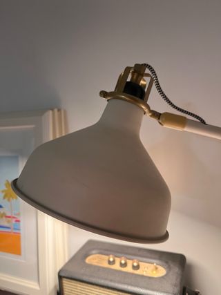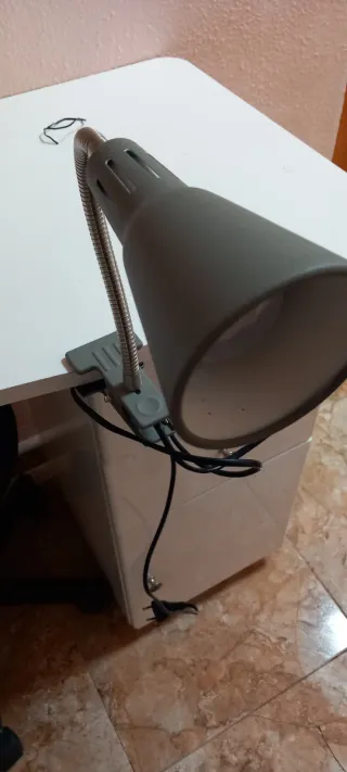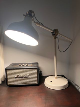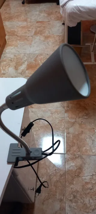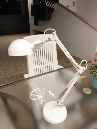 Lámpara de escritorio modelo flexo de Ikea. Su diseño articulado permite ajustar la luz fácilmente. - Base estable. - Brazo flexible para dirigir la luz.