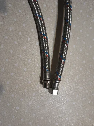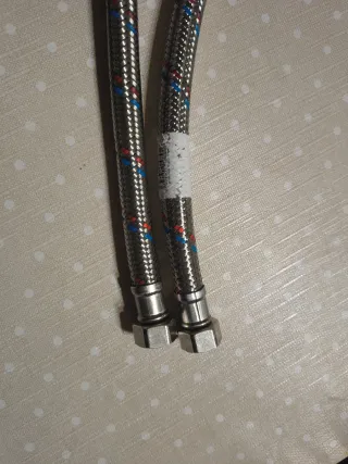Dos flexos de ducha metálicos y detalles en varios colores. Uno es macho- hembra y el otro hembra-hembra Son nuevos sin usar