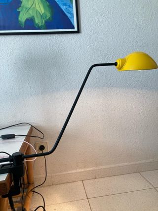 Lámpara de escritorio de diseño icónico de Metalarte. Su brazo articulado permite ajustar la luz a la perfección. - Estructura metálica. - Color amarillo vibrante. - Diseño vintage.