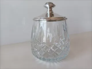Azucarero en cristal alemán tallado con una elegante luminosidad y tapa en plateado con numeración interior número 59. Sin picaduras ni faltas en el cristal. Medidas: alto 15 cm y base 10 cm con gran capacidad interior. Tiene marca de contraste en la tapa. HACEMOS ENVÍOS. No molestar con descuentos. Más artículos interesantes. Limoges, Rosenthal, Wedgwood, La Cartuja de Sevilla Pickman, Villeroy, Murano, WMF, figuras Nadal, Lladró, Nao, Rakoto, Pedro Borja cubismo, lámparas esmaltadas, Fase, flexos.