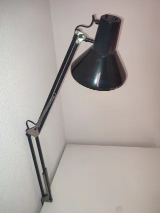 Preciosa lámpara de escritorio de estilo vintage. Ideal para añadir un toque retro a tu espacio de trabajo. - Lámpara de pinza, fácil de colocar en cualquier superficie. - Perfecta para iluminar tu escritorio o mesita de noche. - En buen estado, lista para usar.