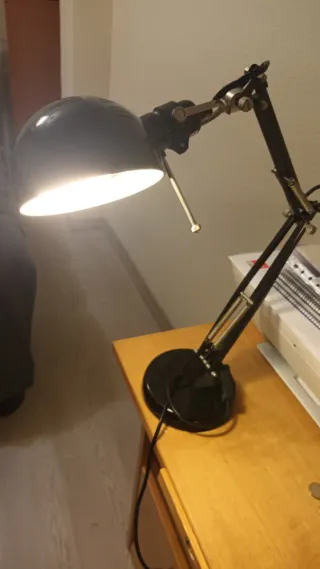 Se vende lámpara de escritorio Ikea con soporte ajustable a diversas superficies, ideal para lectura, en perfecto estado prácticamente nueva, tal y como muestran las fotos. - Color: Negro - Potencia: 40W - Tipo: Flexo con pinza tipo foco. - Cable con interruptor. - Soporte ajustable. - Interruptor de encendido y apagado. - Orientable. Hago envíos por Wallapop envíos. SE ENTREGA TAMBIÉN EN ALCORCÓN ZONA C.C. LOS PINOS O MADRID ZONA DELICIAS.